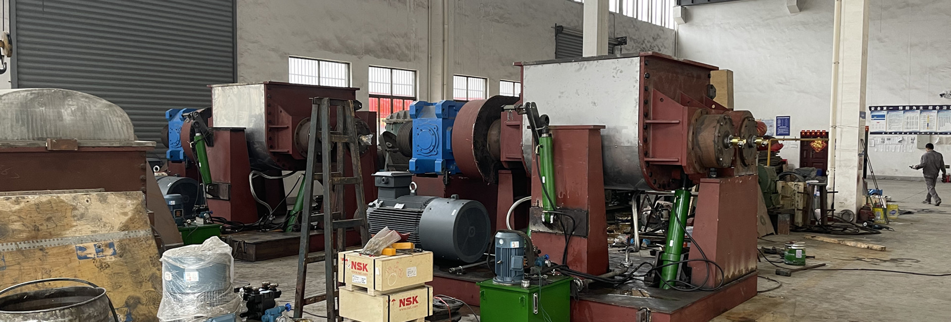 工廠擁有各類型專用生產(chǎn)設備30多臺套,具備車、刨、鏜、銑、焊等各種加工能力。大型機加工設備如CW61160L車床、T×6113C3/IV數(shù)控鏜床等等,滿足各種型號的捏合機的生產(chǎn)和加工。